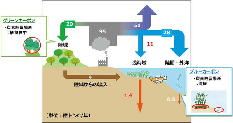 図1 全世界におけるグリーンカーボンとブルーカーボンの炭素循環