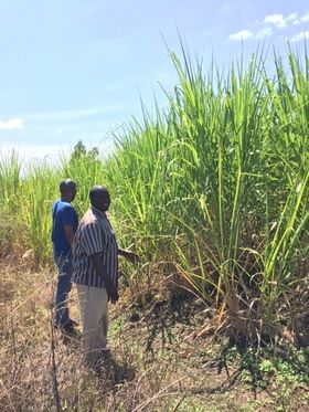 新事業・酒造ビジネスに向け、原料となるサトウキビ畑の視察の様子