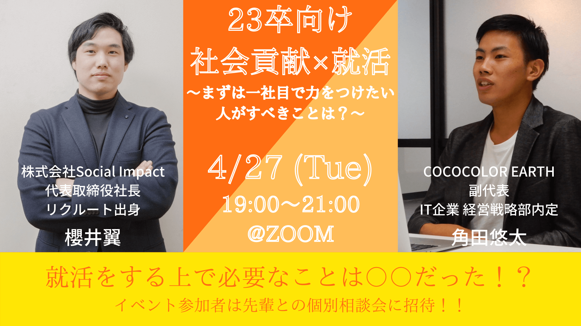 【4/27(火)19:00~】社会貢献×就活 ~まずは一社目で力をつけたい人...