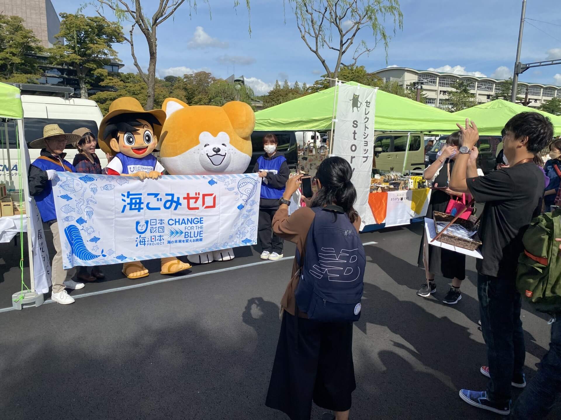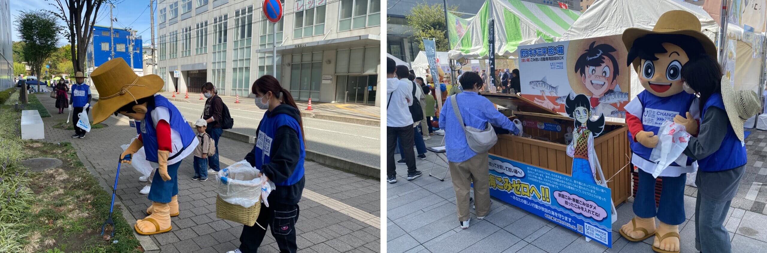 あきた海ごみゼロプロジェクト実行委員会は、10月8日(日)にABS秋田放送主催の「ABSまつり2023」にて、CHANGE FOR THE BLUEオリジナルごみ袋を配布し、来場者や出展者の方々と三平くん率いる釣りキチ三平ごみ拾い隊も加わった会場周辺の清掃活動を行いました。