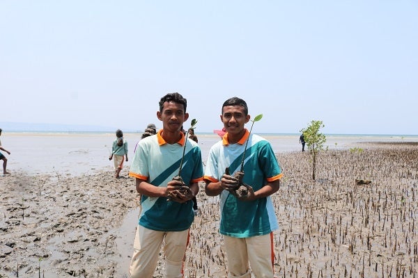 スンバ島はかつて香木の白檀の輸出で栄えていました。現在はむき出しの岩や草しか生えていない荒地が広がっています。スンバ島農村部では今でも住居や生活道具、調理のための薪など日常的に木を使う生活をしています。そのため木の伐採を禁じることは難しいです。また植林するためには放牧している家畜が食べないように柵を設ける、雨が全く降らない乾季に水やりをするといった管理の概念がないため、住民や現地NGOの協力が必要不可欠となります。マングローブは建材や薪として現地では活用され、違法伐採されてそのまま枯れて放置された地域もあります。