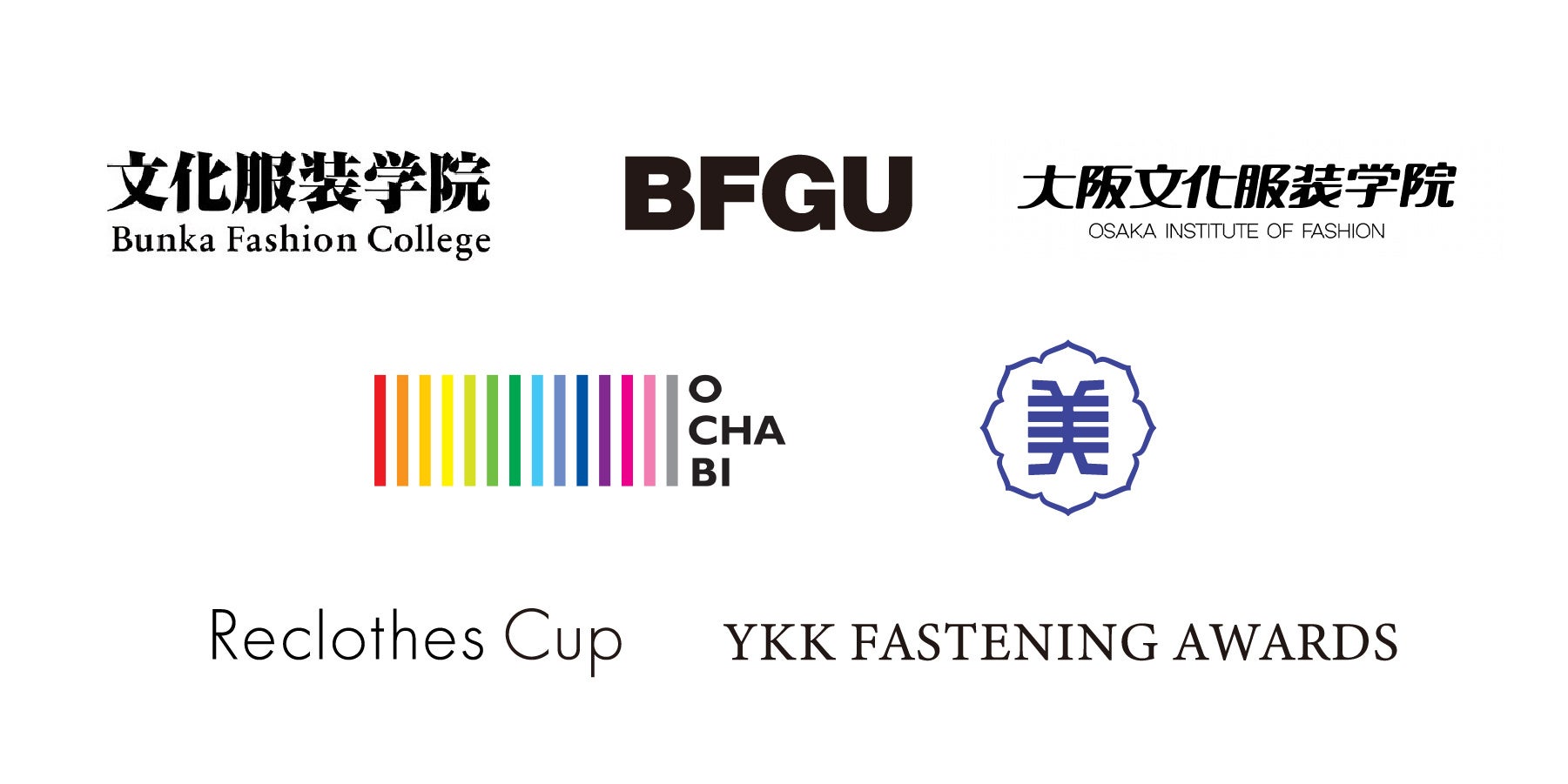【参加学校・企業一覧】① 文化服装学院 ② BFGU(文化ファッション大学院大学) ③ OIF SUPER CREATIVE ACT ④ 御茶の水美術専門学校×DIC株式会社 ⑤ 女子美術大学短期大学 ⑥ Reclothes cup 2023 (ブックオフ主催) ⑦ YKK FASTENING AWARDS (YKK主催)