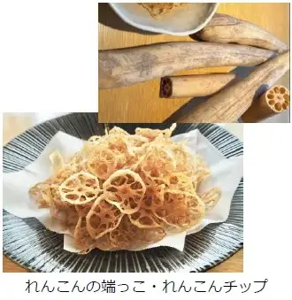 以前より朝食で人気のあった、広島県三原市大和町の特産れんこん「大和のべっぴんさん」。農家へ訪問した際に、「れんこんの端っこは売り物にならない。自分たちで消費するにも限界があり、もったいないけれど廃棄している」というお話を伺いました。その際にお茶請けでいただいた「れんこんチップ」がとても美味しく、作り方を教えていただき朝食で提供することになりました。