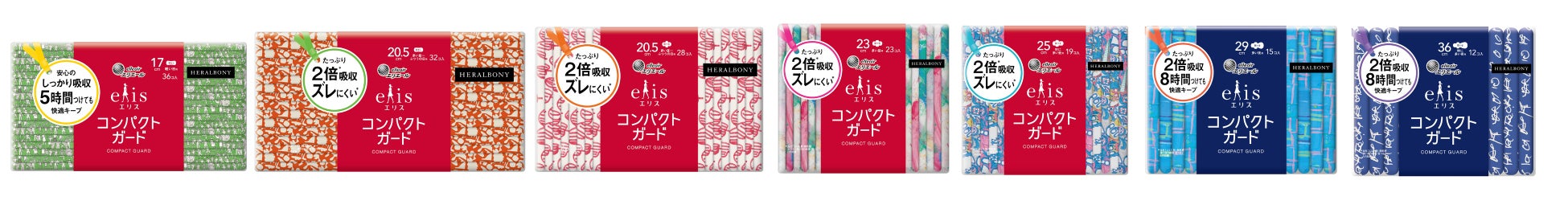 【エリス コンパクトガード】 次世代をつくる活動的な女性に向けた超スリムタイプ生理用ナプキンとして2018年に誕生。わずか1.9mmの極薄シートながらも、従来のナプキンの2倍吸収を実現させ、機能性とデザイン性を兼ね備えたシリーズ。ファーやデニムなどさまざまな素材感のカラフルなデザインで、生理用品に見えず持ち歩きやすい個包装が特長です。 |