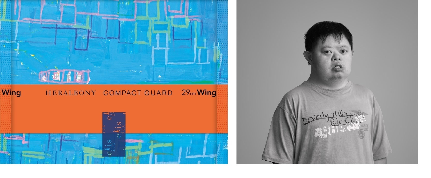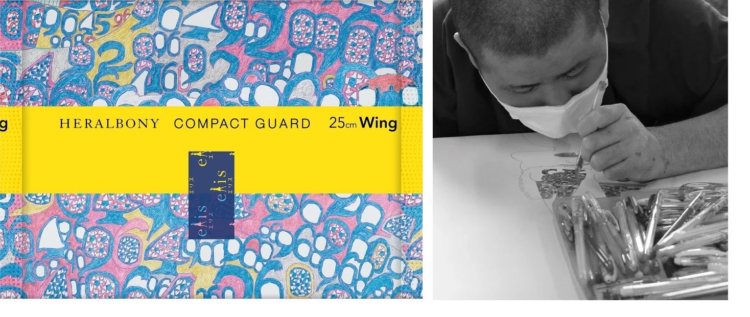 「エリス コンパクトガード」は、”魅せるデザインで生理中の気分を上げる”ことをコンセプトに、カラフルなデザインとわずか1.9mmの極薄シートながらも従来のナプキンの2倍吸収※2を実現させ、機能性とデザイン性を兼ね備えた超スリムタイプの生理用ナプキンです。今回、ヘラルボニーが有する2,000点の作品の中から、従来のコンパクトガード(7商品)のカラーイメージに合った異彩作家7名の作品を選出していただき、個包装に採用しました。持っているだけで気持ちが上向きになるようなカラフルなデザインで、憂鬱になりがちな生理中の気分を高めてくれます。