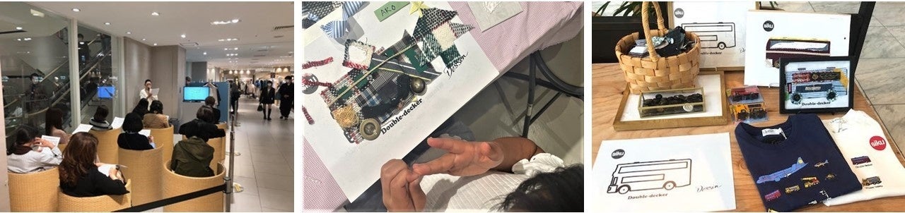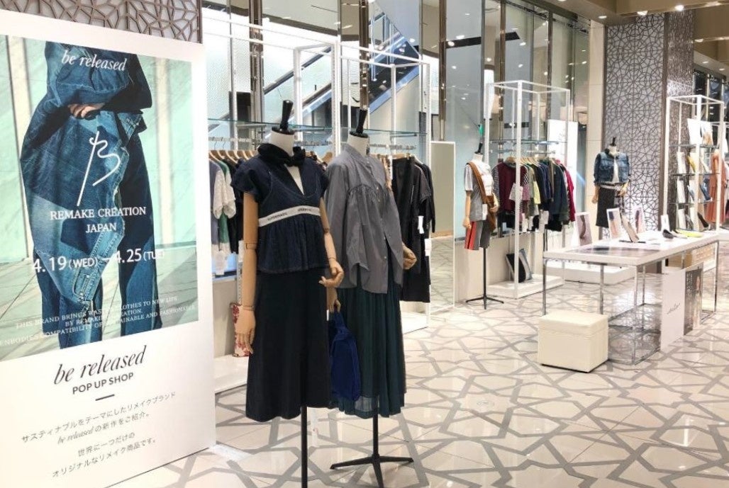 ・“産学連携企画”として北海道文化服飾専門学校制作のリメイク商品を展示。