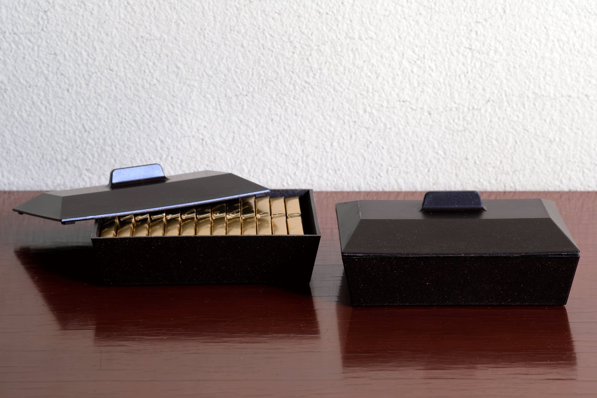 チョコレートを楽しむ人のためのフタつきトレイ。ほんのりチョコレートの香りがします。