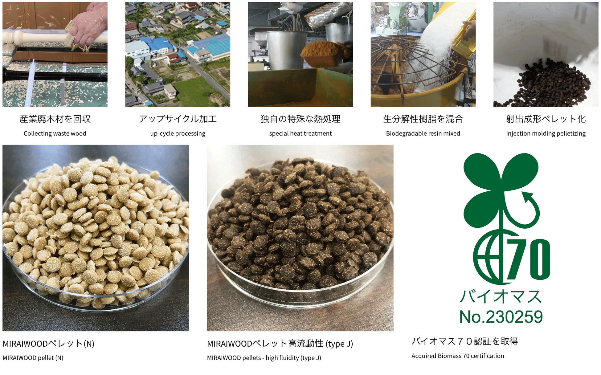 また、素材のアップサイクルに加えて、低エネルギーでリサイクル可能な循環型の環境材料です。