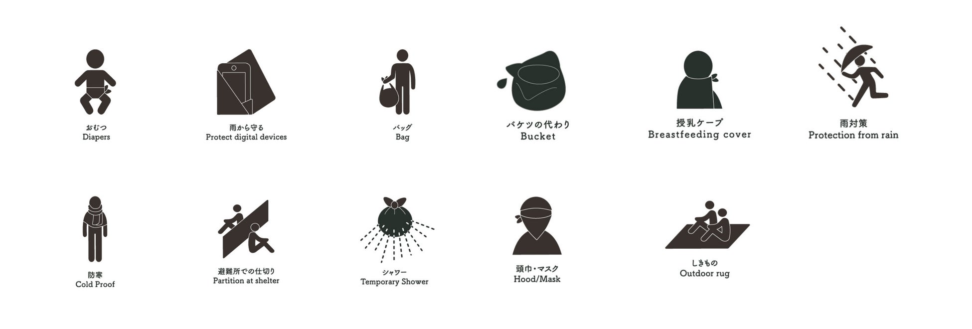 多くの反響をいただいた第1弾の防災ふろしきの販売から4年。多くの防災グッズも世の中に出回り、グッズを準備する人や家庭が増えました。そんな状況の中、さらにこれからは災害が起きた時に大事にいたらないライフスタイルを日ごろから送ることを多くの人々が意識することが大切であると私たちは考え、より日常になじむ第2弾の防災ふろしきの開発に至りました。