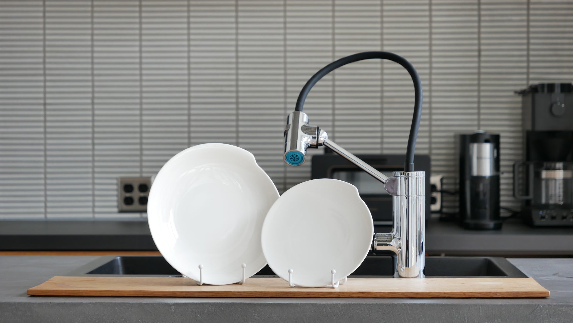 DG TAKANOは、水ですすぐだけで簡単に汚れが落ちる食器「meliordesign」で、2023年度の省エネ大賞〈製品・ビジネスモデル部門〉審査委員会特別賞に輝いており、2年連続での受賞となりました。この食器と水栓を組み合わせて使うことで効果はさらにアップ。節水率は最大95%となり、食器洗いの負担を大幅に減らせます。