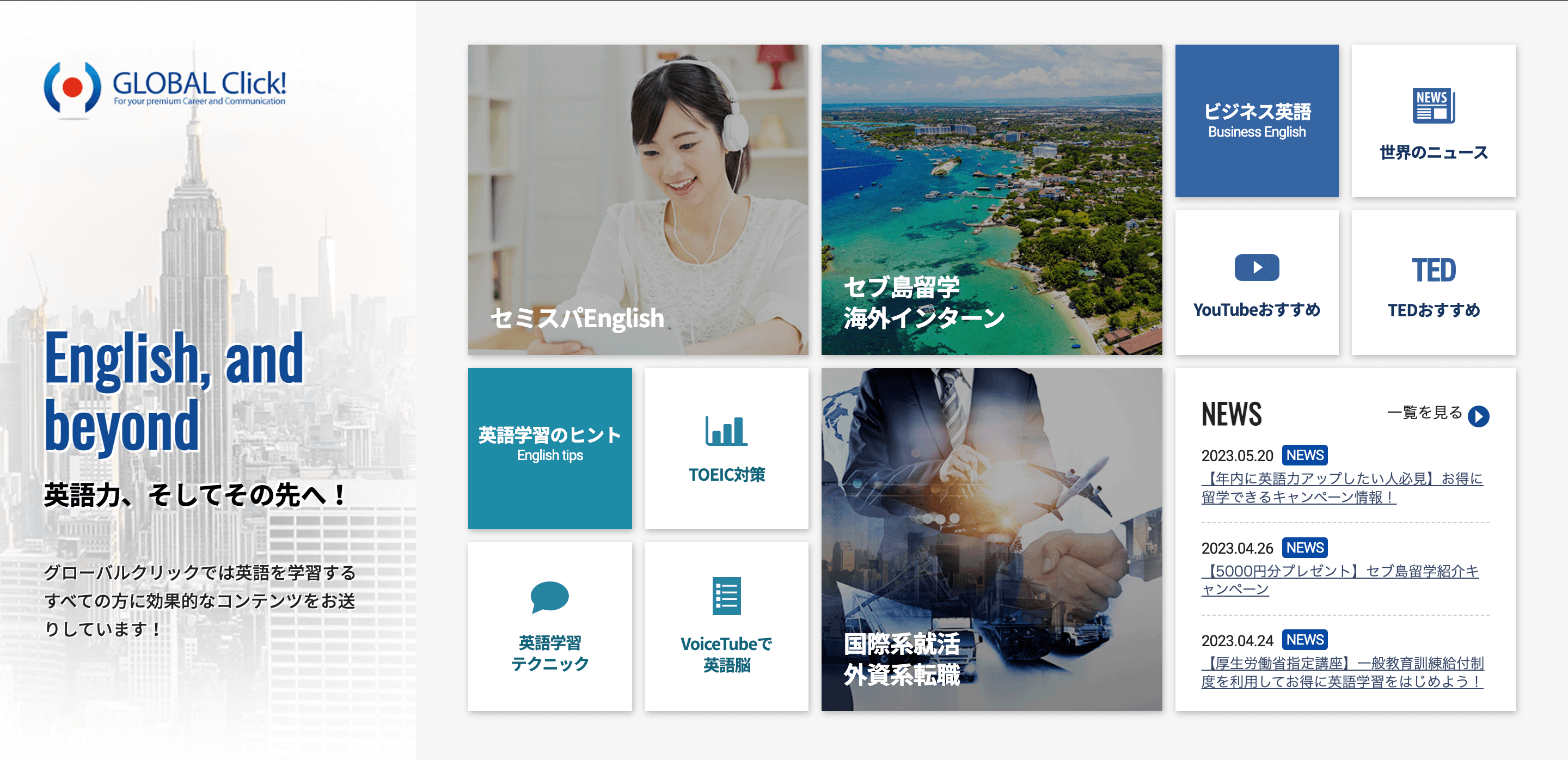 グローバルクリックは、留学前のオンライン英会話の無料提供や特別料金でのコーチングプログラム、そして国際系を目指す大学生向けの就活プログラムといった独自のサポートを提供しています。